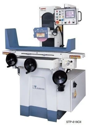 - PLC control uses a menu-driven LCD touch screen is easy to learn and easy to set. Simply fill in the blanks to set total grinding amount, rough increment, fine increment, sparkout passes, feeding direction, parking position, wheelhead retract distance, and press cycle start to complete automatic grinding cycle. (CII models only)