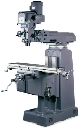 These vertical knee mills are equipped with vari-speed drive, available with optional digital vari-speed. The dove tail ways chromed, and the box ways are hardened and ground.