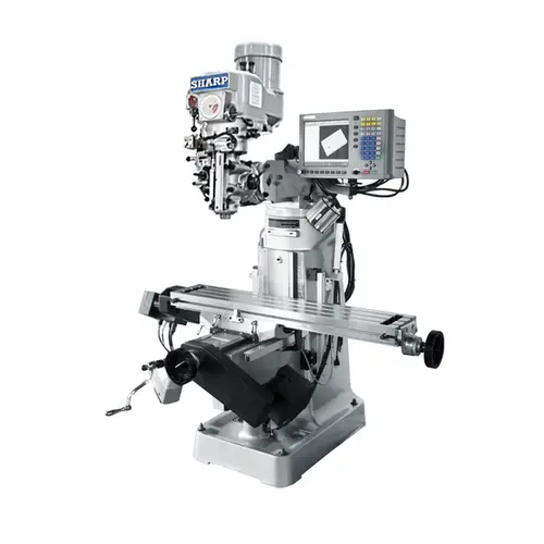 CNC control by Acu-Rite MP-2, G2. The 3rd axis is on the quill. Conversational programming allow easy operation of the machine without using G code. Machine is Model LMV-50 with variable speed spindle.