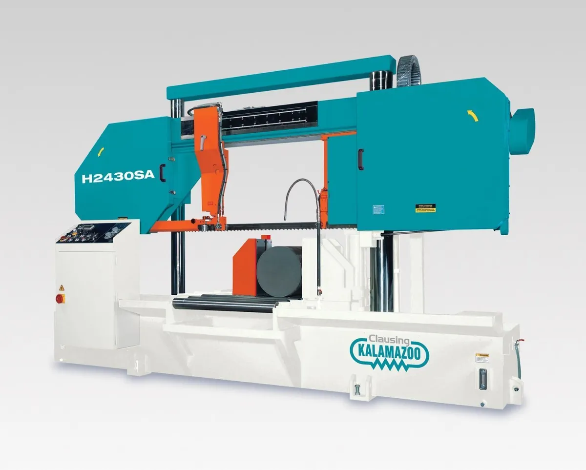 Clausing Kalamazoo Double Column Semi-automatic Horizontal Bandsaw 24.4” x 30” Max Rectangular Capacity, 24.4” Round Capacity, 66 to 328 SFPM Blade Speed, 10 Hp drive motor, 230 volts 3 Phase
