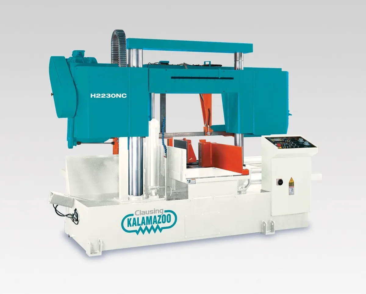 Clausing Kalamazoo Double Column Fully Automatic Horizontal Bandsaw 24.4” x 30” Max Rectangular Capacity, 24.4” Round Capacity, 66 to 328 SFPM Blade Speed, 10 Hp drive motor, 230 volts 3 Phase