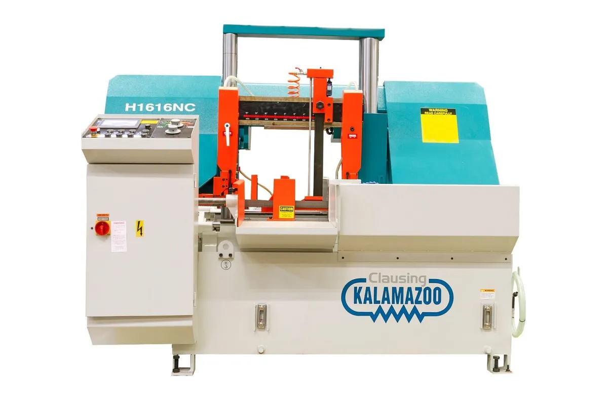 Clausing Kalamazoo Double Column Automatic Horizontal Bandsaw 16.5” x 16.5” Max Rectangular Capacity, 16.5” Round Capacity, 57 to 378 SFPM Blade Speed, 7.5 Hp drive motor, 230 volts 3 Phase