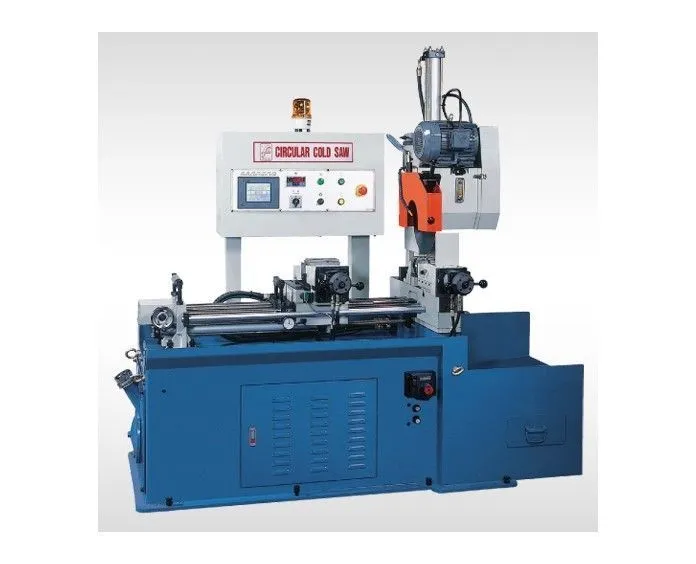 Clausing Automatic Ferrous Cutting Circular Cold Saw, full hydraulic system, 4.33” x 1.97” Max Rectangular Capacity, 4.33” Round Capacity, 0.19” to 26” Single stroke barfeed of material, Manual Pneumatic Vice, 2 speed spindle motor w/high low gears, low speed 70/35 RPM high speed 120/60 RPM, 3Hp low speed, 5Hp high speed, 230 or 460 volts 3ph